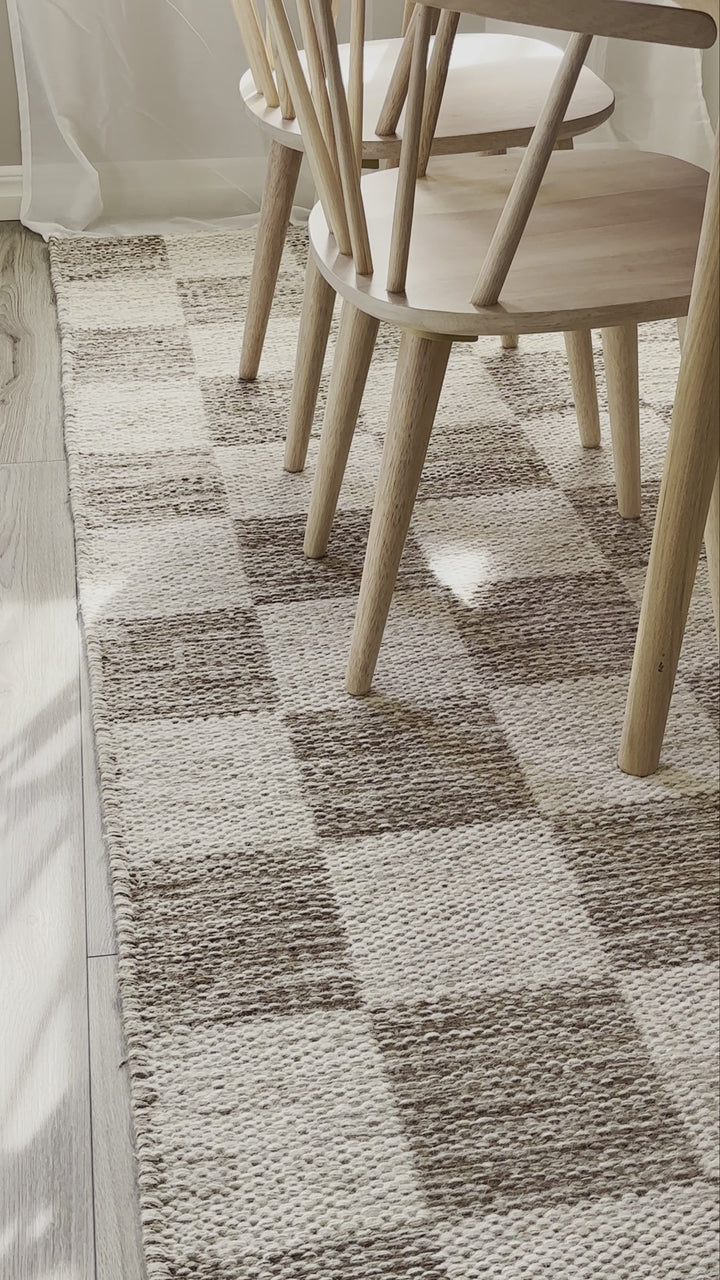 Det stilrena, melerade rutmönstret är både tidlöst och dekorativt, vilket gör att mattan enkelt passar in i olika miljöer och inredningsstilar. Ullens naturliga egenskaper gör dessutom Chessie både slitstark och lättskött.