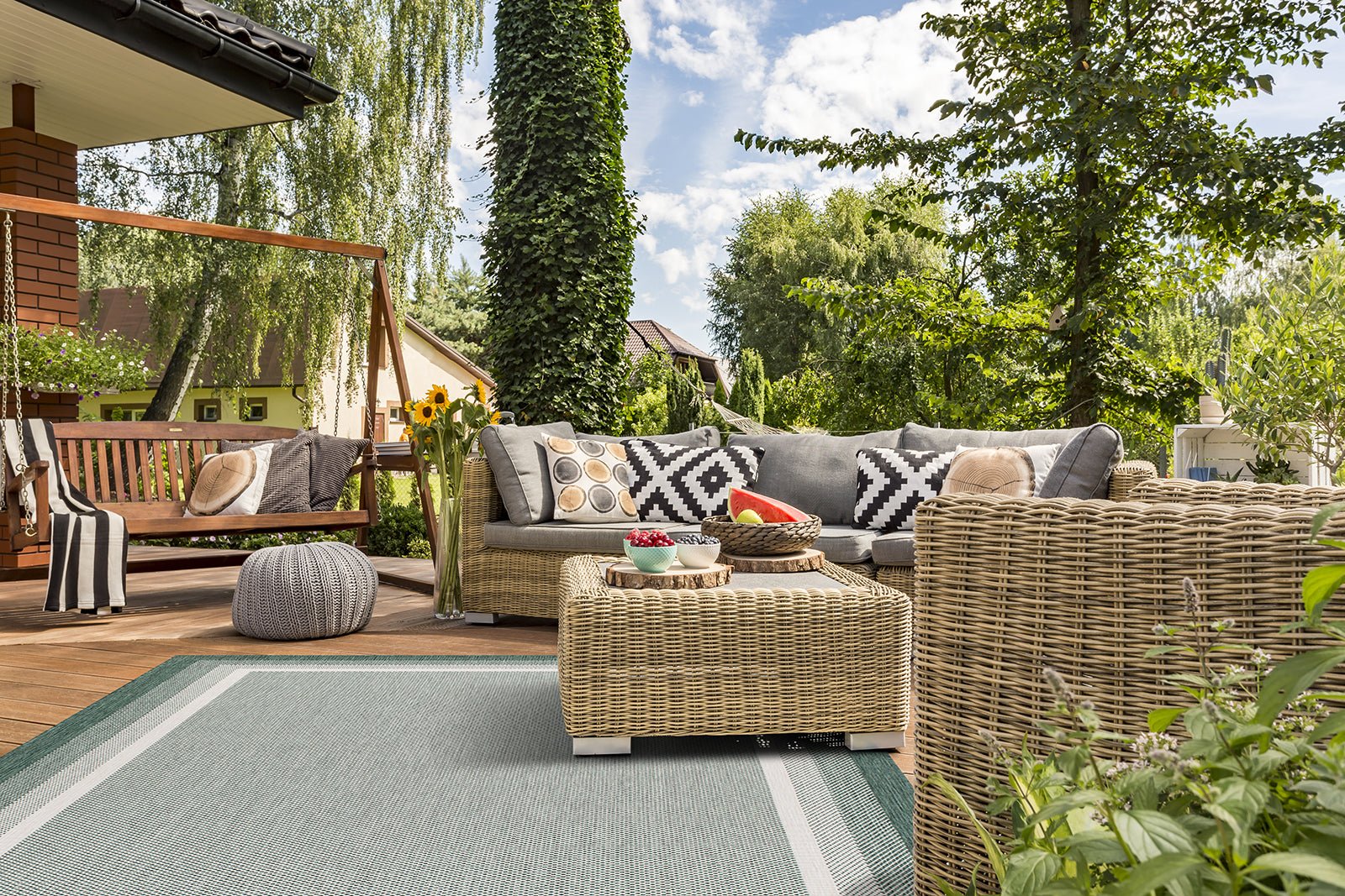 Många uteplatser har sten- eller trägolv, som kan vara hårda och obekväma att gå på barfota. Genom att placera en matta på din uteplats ger du den en behaglig och skön yta att vila fötterna på. Du kan välja en slätvävd och mjuk matta för att skapa en ombonad känsla. Att kunna njuta av din uteplats utan att behöva oroa dig för obekvämt underlag gör det till en mer avkopplande plats att vara på.